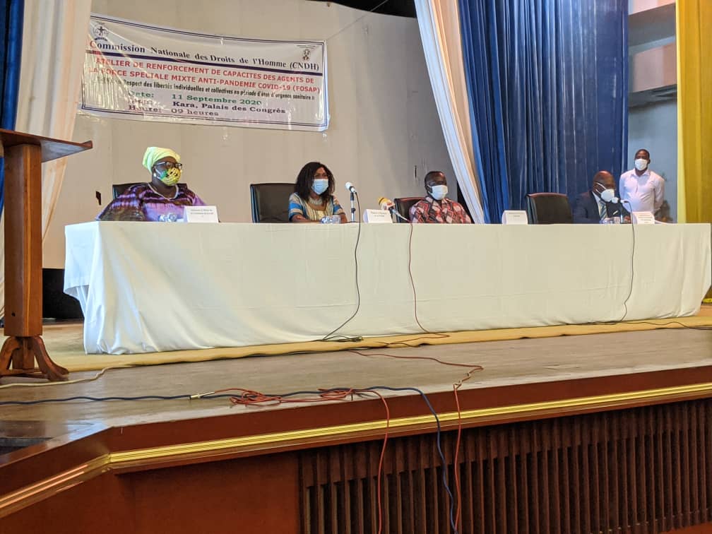 Deux ateliers régionaux tenus respectivement le 11 septembre 2020 à Kara (Palais des Congrès) et le 17 septembre 2020 à Lomé (Agora Senghor), ont permis de renforcer les capacités des agents de la Force spéciale mixte anti-pandémie COVID-19 (FOSAP). Organisés par la Commission nationale des droits de l’homme (CNDH) du Togo, ces ateliers ont porté sur « Le respect des libertés individuelles et collectives en période d’état d’urgence sanitaire ». Les deux rencontres ont été présidées par le président de la Commission, Madame Nakpa POLO, en présence du Représentant du Ministre de la Sécurité et de la protection civile.