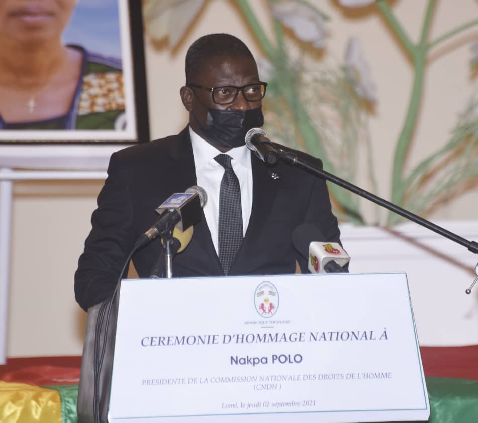 Au nom du Peuple Togolais, le Président de la République, Son Excellence Monsieur Faure Essozimna GNASSINGBE, par la voix du Porte parole du gouvernement, Monsieur Christian TRIMUA, a salué la mémoire de Eugénie Nakpa POLO à qui il a rendu un vibrant hommage pour son ferme engagement en faveur des droits de l’homme. Il a exprimé ses condoléances à la famille éplorée, à la CNDH, aux commissaires et au personnel de l’institution.