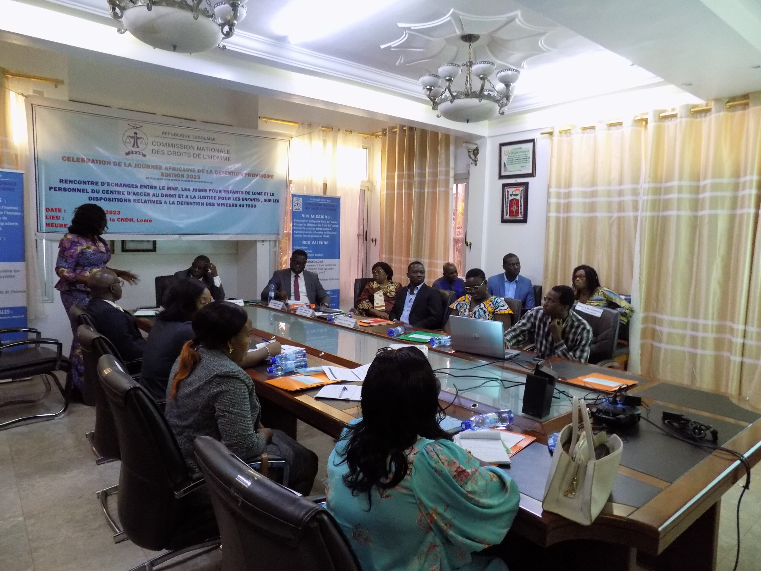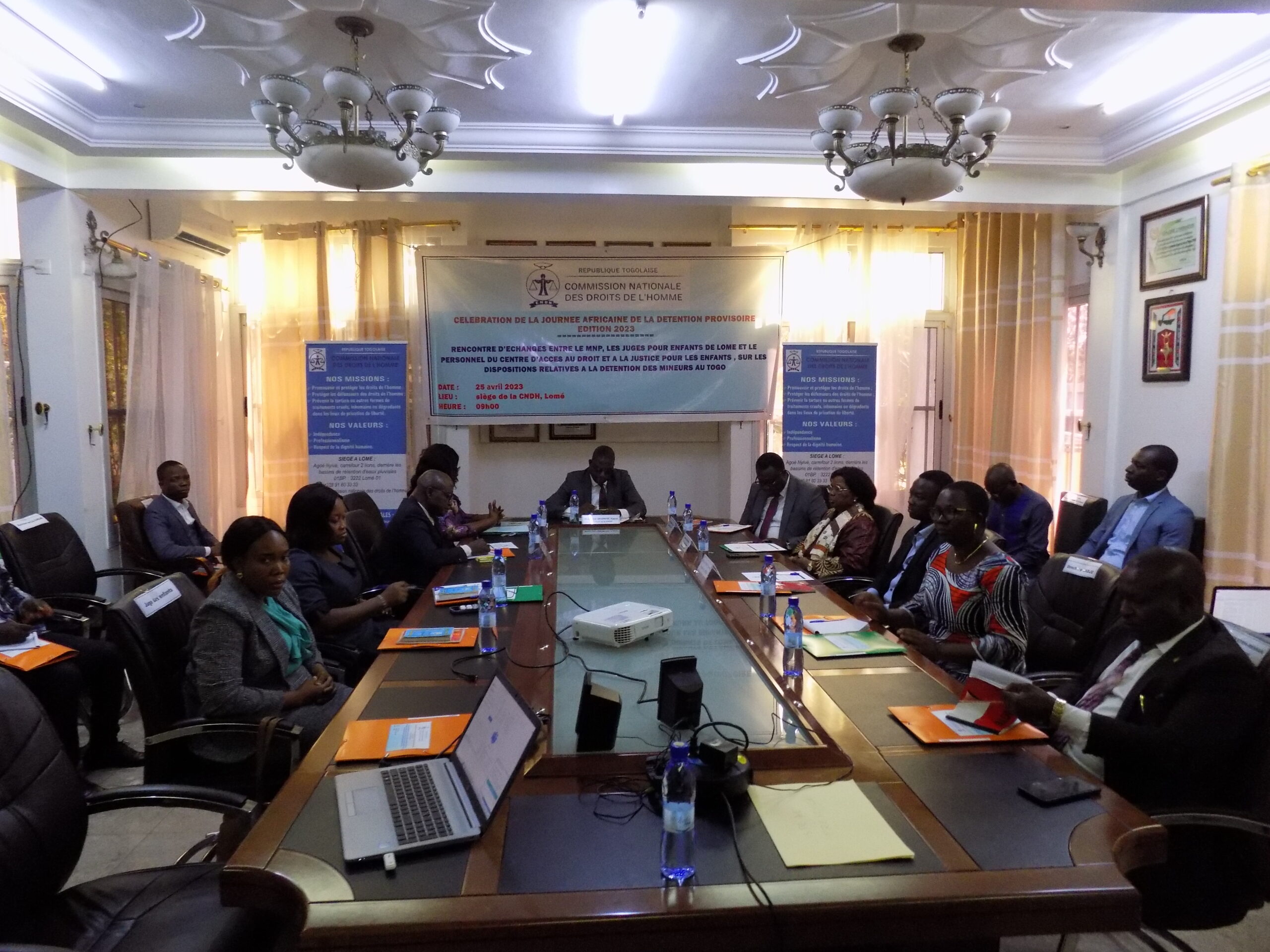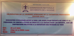 La salle de réunion de la Commission nationale des droits de l’homme (CNDH) a servi de cadre le 25 avril 2023, à une rencontre d’échange avec les acteurs du processus judiciaire pour enfants. Cette rencontre s’inscrit dans le cadre de la célébration de la journée africaine de la détention préventive et a porté sur les dispositions relatives à la détention des mineurs au Togo. Elle vise à rappeler aux différents acteurs la nécessité pour eux de respecter les règles fondamentales en matière de détention des enfants en conflit avec la loi afin de contribuer à une réduction de l’usage excessif de la détention préventive. Les travaux ont été présidés par monsieur Yaovi SRONVIE, président de la CNDH, en présence des autres commissaires.