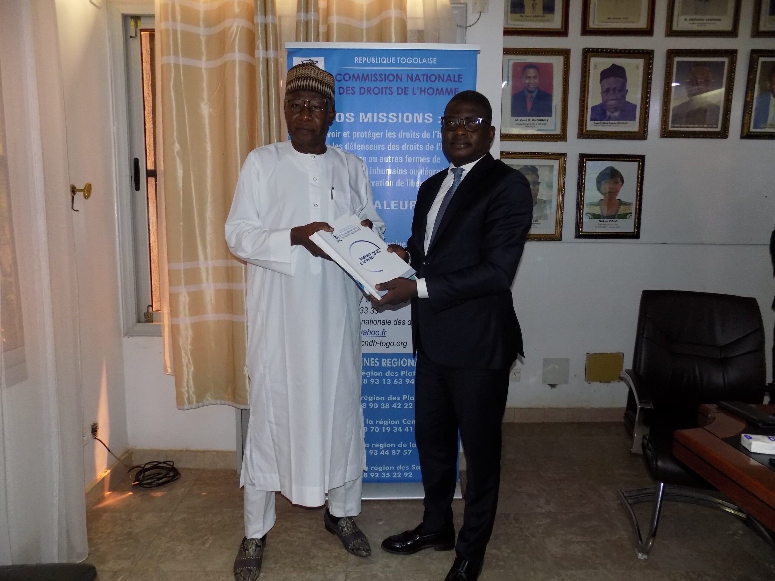 Acquérir de bonnes pratiques de fonctionnement d’une institution nationale des droits de l’homme pour une plus grande efficacité : tel est l’objectif d’un voyage d’études effectué du 27 août au 02 septembre 2023 par une délégation de la Commission nationale des droits de l’homme (CNDH) du Tchad auprès de son homologue du Togo. Cette délégation conduite par le Président de l’institution, monsieur MAHAMAT NOUR AHMED IBEDOU, s’inscrit dans le cadre du projet visant à renforcer les capacités opérationnelles de la CNDH du Tchad dans divers domaines notamment le monitoring des droits de l’homme lors des opérations d’application des lois par les forces de sécurité intérieure (FSI). La salle de réunion de la CNDH a servi de cadre aux travaux présidés par monsieur Yaovi SRONVIE, président de la CNDH du Togo.